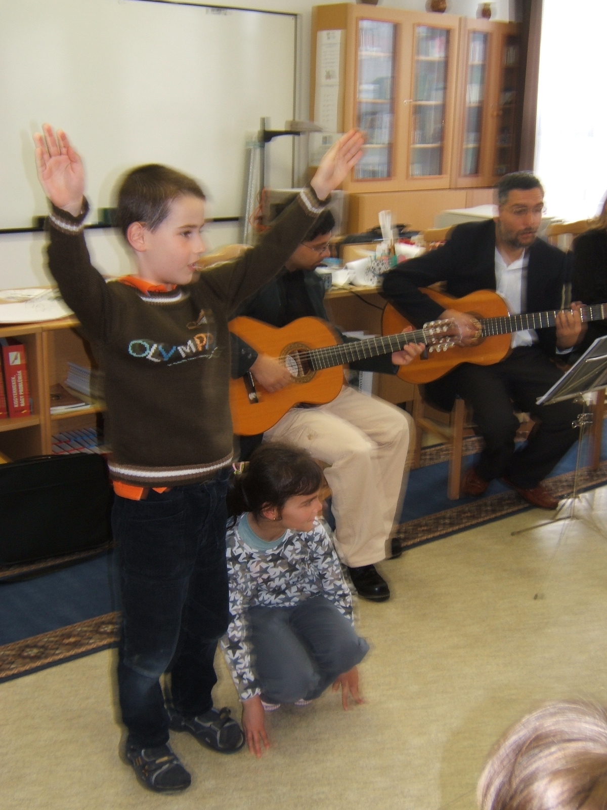 Nyilvános 1439 | 3262 | Költészet napja műsor a zalakarosi könyvtárban 2006. április 11-én. Vendégünk volt a Kardos Banda együttes, aki a kisiskolásoknak és a nagyoknak külön összeálított \"Költészet - minden formában régiektől, maiaktól\" című műsorát adta elő. | |