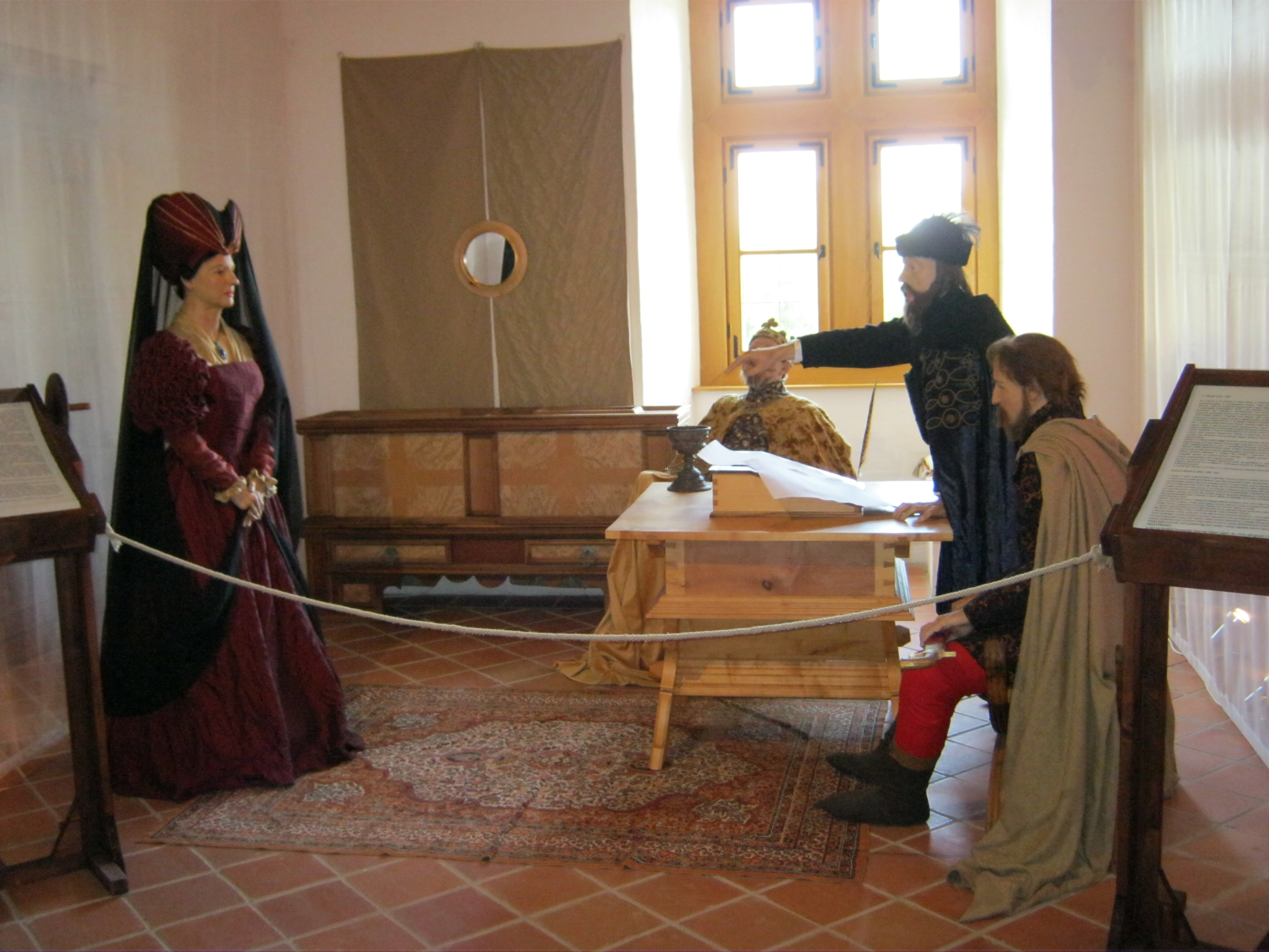 Nyilvános 1058 | 1849 | Nyírbátor, Vár utca 1. Báthori várkastély | A Báthoriak várkastélyának többször átalakított egyetlen megmaradt épületét a közelmúltban állították helyre. Pincéjében reneszánsz étterem látogatható, földszintjén és emeletén a Báthori Panoptikum 45 élethű és korhű viaszfigurában mutatja be érzékletesen a jeles nemesi család és Nyírbátor történetét. A figurák tervezője és készítője Megyeri János szobrászművész. A megtekintést olvasható és hallgatható kalauzolás kíséri. A kiállítást a kenyérmezei csata 530. évfordulóján, 2009.október 13-án adták át. Az 1479-ben a törökkel vívott csata egyik hőse Báthori István volt. A kiállítás további része a XVI-XVII. századi főrangú hölgyek életét mutatja be, s kiemelten összpontosít a Nyírbátorban született híres-hírhedt Báthori Erzsébetre. Vitatható, hogy megelevenedik a látogató előtt a vérfürdő elképzelt jelenetsora, ugyanis a kutatások szerint ezzel Báthori Erzsébetet vagyonának megszerzése miatt és politikai okokból, igazságtalanul vádolták meg. Ügyében hivatalos tárgyalásra sem került sor, pedig a képen látható jelenet ezt sugallja. Felh. irod.: Látnivalók Szabolcs-Szatmár-Bereg megyében. Miskolc, Well-PRess, 1999 www.bathorivarkastely.hu A fénykép 2010 augusztus elején készült. |