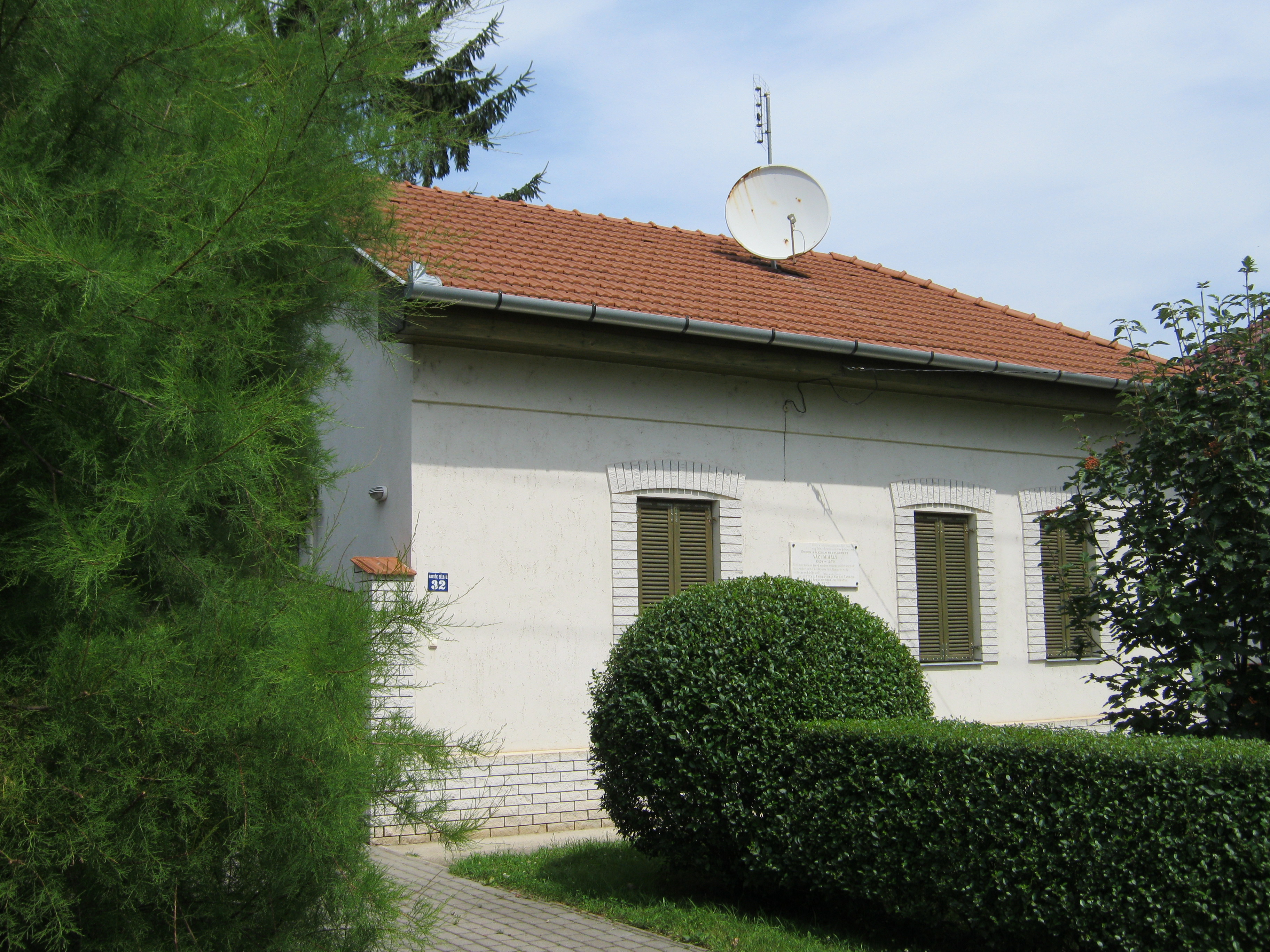 Nyilvános 1044 | 1395 | Nyíregyháza, Bartók Béla utca 32. | Mielőtt a Debrecen felé vezető műút átszelné a vasútvonalat, Nyíregyháza központjától távol, a Bartók Béla utcában ma is álló családi házon emléktáblát találunk: "Ebben a házban nevelkedett Váci Mihály". A Szeder utca 59. alatt egykor álló zsúptetős cselédházban született (oda sajnos nem jutottam el, a mai épületet ott is emléktábla jelöli). Életrajzírója, Kovács Sándor Iván így jellemzi gyermekkori környezetét: "Nincs még egy költőnk Illyés Gyula óta, akinek indulását oly meghatározó erővel befolyásolná szülőföld és családi környezet, mint Váci Mihályét. Szülőföldjéről egyszerre hozta magával a nyírségi tájak és a szociális nyomorúság élményét; a tébécé halálos fenyegetésén kívül egyedül ezt jussolta 'névtelen kis cseléd' őseitől, s költészetének és prózájának mindvégig éltető közege ez a kettős inspiráció." A költő 15 éves koráig lakott egy szobában csont-tuberkulózisban szenvedő nagyanyjával. Hat testvére közül csak egy maradt életben. Ebből a közegből származva végezte el a tanítóképzőt (lásd: Nyíregyháza, Széchenyi u. 6.), majd pályáját tanyasi tanítóként kezdte. Váci Mihály nyíregyházi emlékhelyeiről kiváló összefoglalás található itt (2010. 08. 29.): www.vacimihalykor.hu/siremlekek/nyiregyhaza.htm Felh. irod.: Kovács Sándor Iván: Váci Mihály. Bp. Akadémiai Kiadó, 1972 A fénykép 2010 augusztus elején készült. |