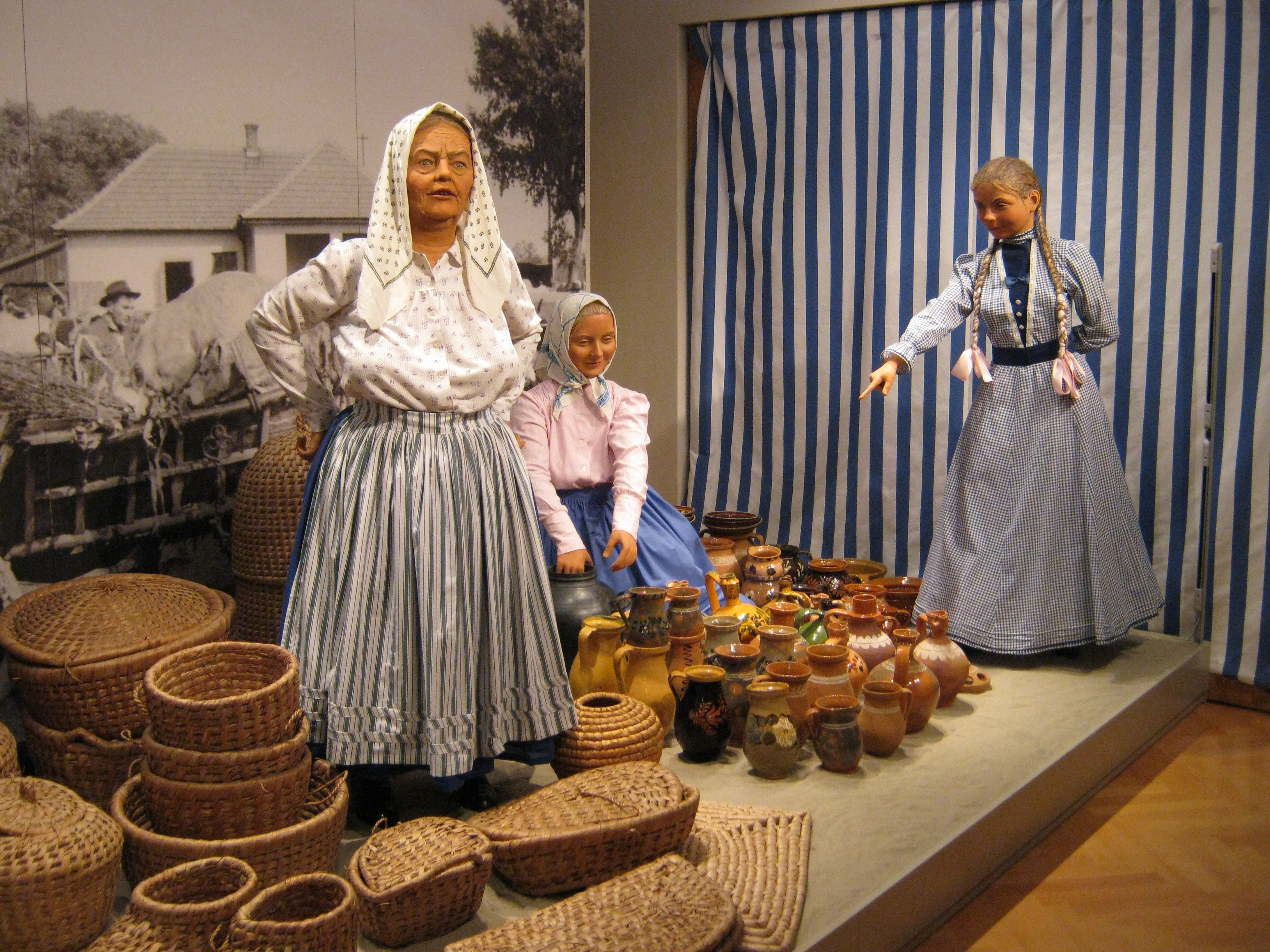 Nyilvános 1057 | 1464 | Nyíregyháza, Benczúr tér 21. Jósa András Múzeum | Magyarország egyik legrégibb múzeumát Dr. Jósa András alapította 1868-ban, akinek ma nevét viseli. Az állandó kiállítás színes részlete igazi vásári hangulatot idéz. A látványt a vásári nyüzsgés hangjai, az árusok rímes kínálgatása egészíti ki, teljes élményt adva a látogatónak. Felh. irod.: Látnivalók Szabolcs-Szatmár-Bereg megyében. Miskolc, Well-PRess, 1999 http://jam.nyirbone.hu A fénykép 2010 augusztus elején készült. |