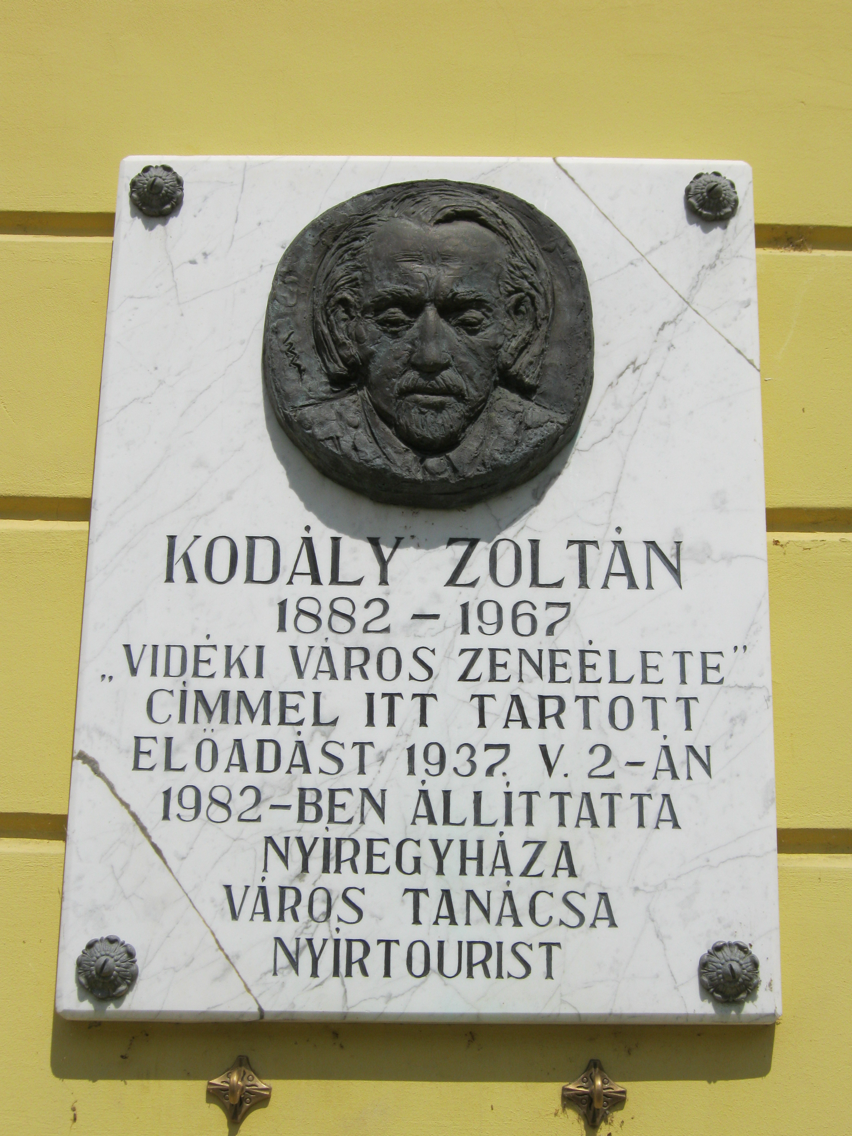 Nyilvános 1023 | 1378 | Nyíregyháza, Bessenyei tér 13. | Nyíregyháza első állandó kőszínháza 1894-ben épült Alpár Ignác tervei szerint eklektikus stílusban. 1955-ben teljesen felújították, csak a színpadi nyílás körüli négy fal maradt meg a régiekből, az épület minden irányban kitágult. Saját társulattal 1981 óta rendelkezik. Az épület falán emléktábla tudósít arról, hogy Kodály Zoltán Vidéki város zeneélete címmel előadást tartott itt, 1937. május 2-án, iskolai kórusoknak az ő műveiből rendezett hangversenyén. Felh. irod.: Látnivalók Szabolcs-Szatmár-Bereg megyében. Miskolc. Well-PRess, 1999 www.moriczszinhaz.hu A fénykép 2010 augusztus elején készült. |