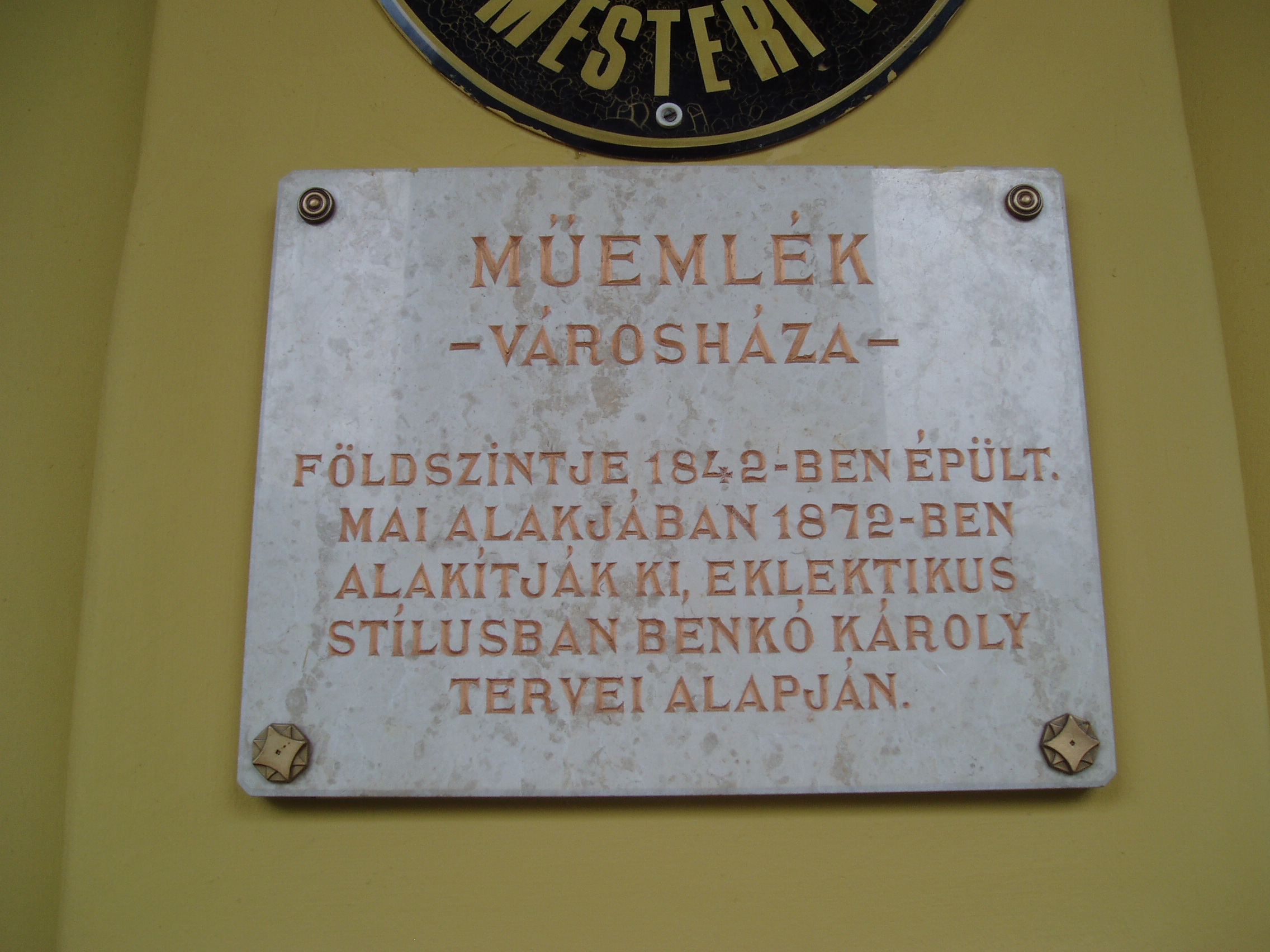 Nyilvános 1381 | 1739 | Nyíregyháza, Kossuth tér 1. Városháza | Nyíregyháza központi terének nyugati oldalát foglalja el a Városháza. Az eklektikus stílusú, reneszánsz hangulatú, árkádos bejáratú épületet Benkó Károly tervezte az eredetileg itt álló ún. Báthori-ház földszintjének felhasználásával. Mai alakjában 1872-ben alakult ki. A későbbiekben még több épületrésszel bővítették. 1876-tól 1892-ig, a megyeháza (lásd: Hősök tere 5.) felépüléséig a megyei közigazgatás központja is itt működött. Az épületen több emléktábla is tanúskodik a város és a városháza múltjáról. Felh. irod.: Látnivalók Szabolcs-Szatmár-Bereg megyében. Miskolc, Well-PRess, 1999 A fénykép 2010 augusztus elején készült. |