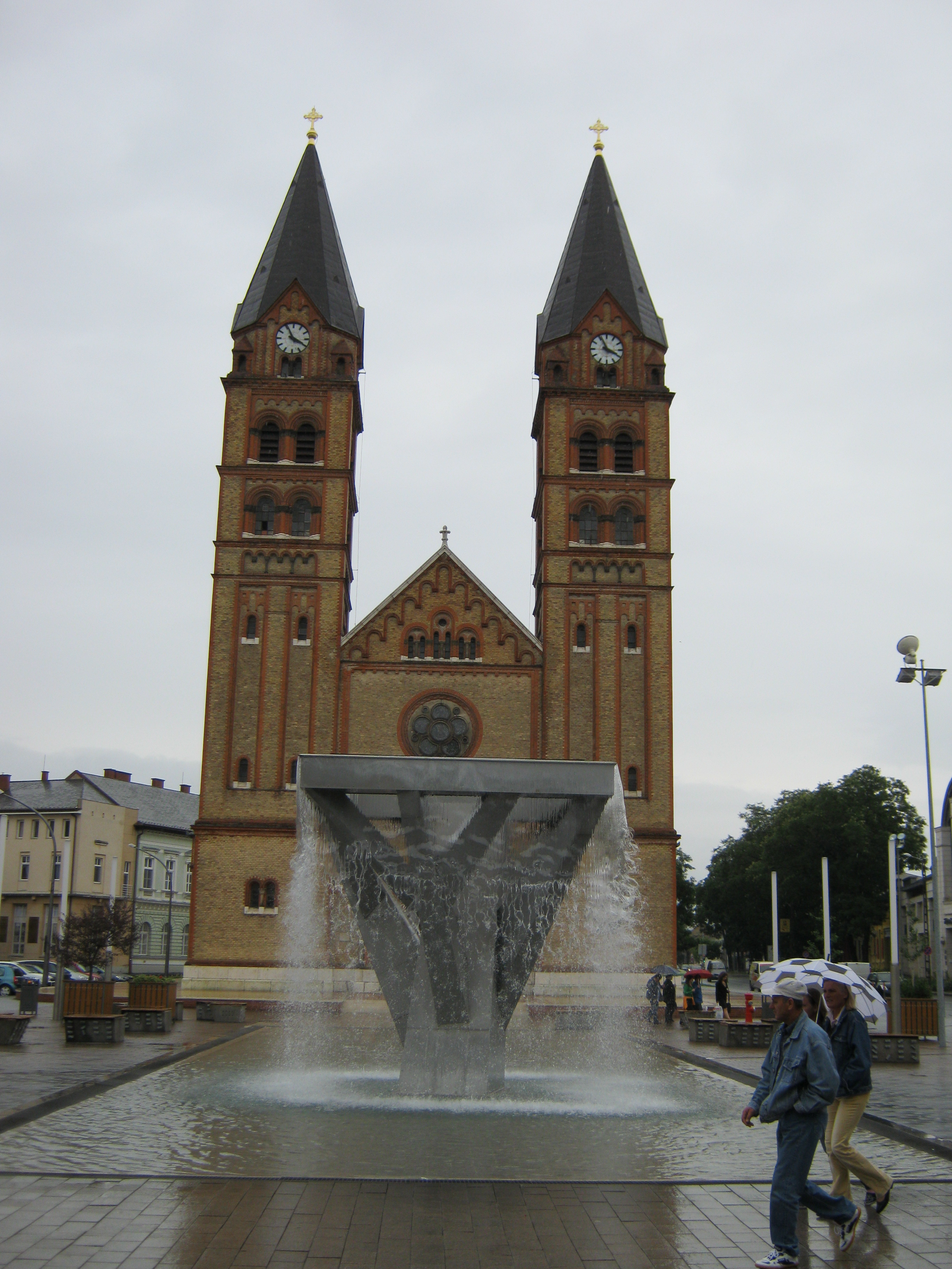 Nyilvános 1048 | 1653 | Nyíregyháza, Kossuth tér: Római katolikus templom | A Kossuth tér leghatalmasabb épülete a Magyarok nagyasszonya titulust viselő római katolikus templom. 1902-ben szentelték fel a kettős tornyú, neoromán épületet. A neoromán stílusjegyek nemcsak az architektúrában, hanem a templom berendezésében is megnyilvánulnak. Orgonája a pécsi Angster-gyár terméke. A fénykép 2010 augusztus elején készült. Felh. irod.: www.nyiregyhaza.plebania.net |