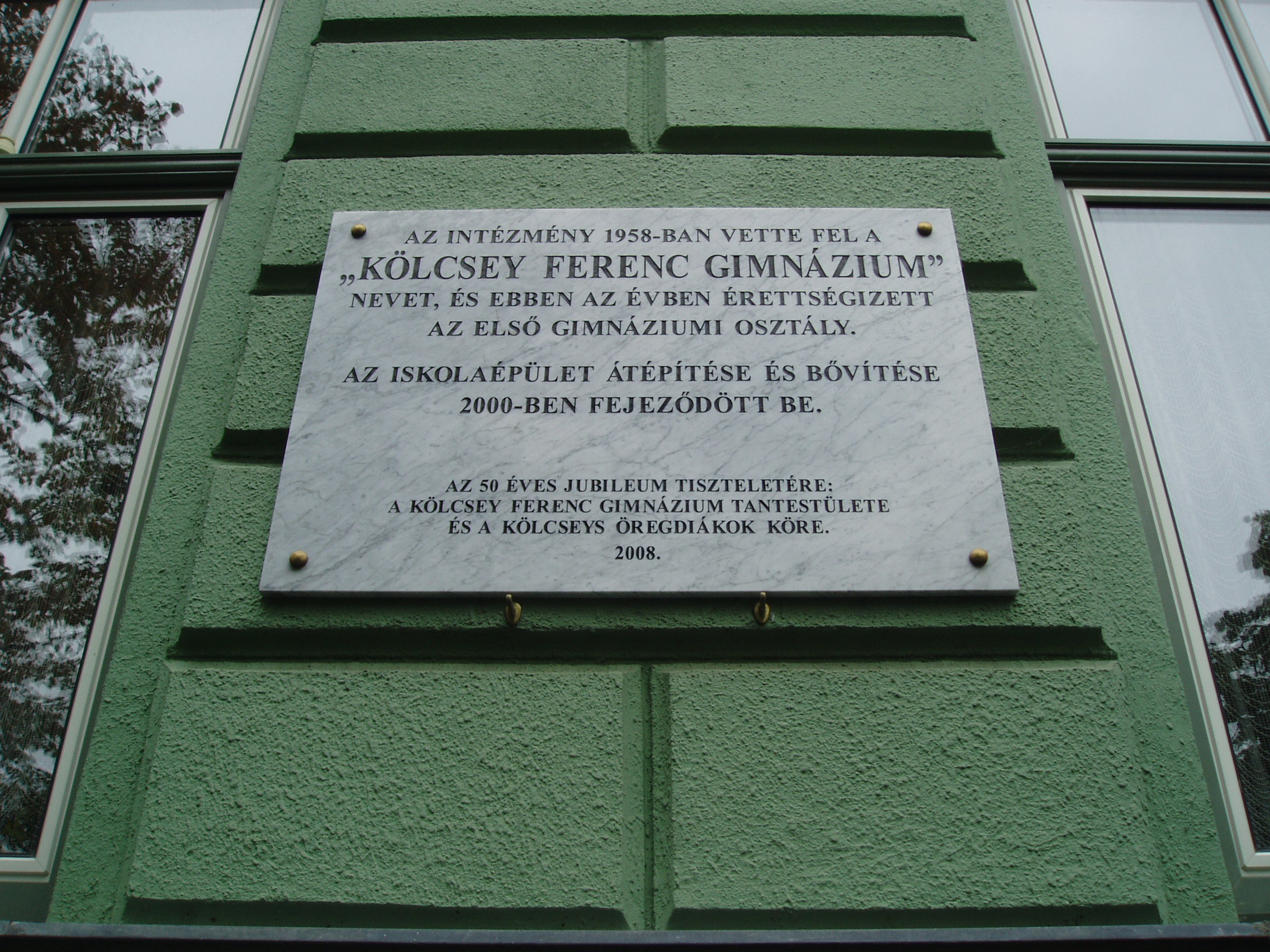 Nyilvános 1024 | 1434 | Nyíregyháza, Széchenyi utca 6. Kölcsey Ferenc Gimnázium | Épületét 1901-ben, Barzó Mihály tervei alapján, pénzügyigazgatósági székháznak emelték. 1925-től, 1957-ben történt megszűnéséig középfokú tanítóképző intézetként működött. Azóta a Kölcsey gimnázium otthona. Az első gimnáziumi osztály 1954/55-ben még egy korábbi épületben kezdte meg a tanulást, de már itt érettségizett 1959-ben. Az iskolaépület homlokzatán több emléktábla idézi az egykori tanítóképző, majd gimnázium neves tanárainak és diákjainak alakját. Felh. irod.: www.kolcsey-nyh.sulinet.hu A fénykép 2010 augusztus elején készült |