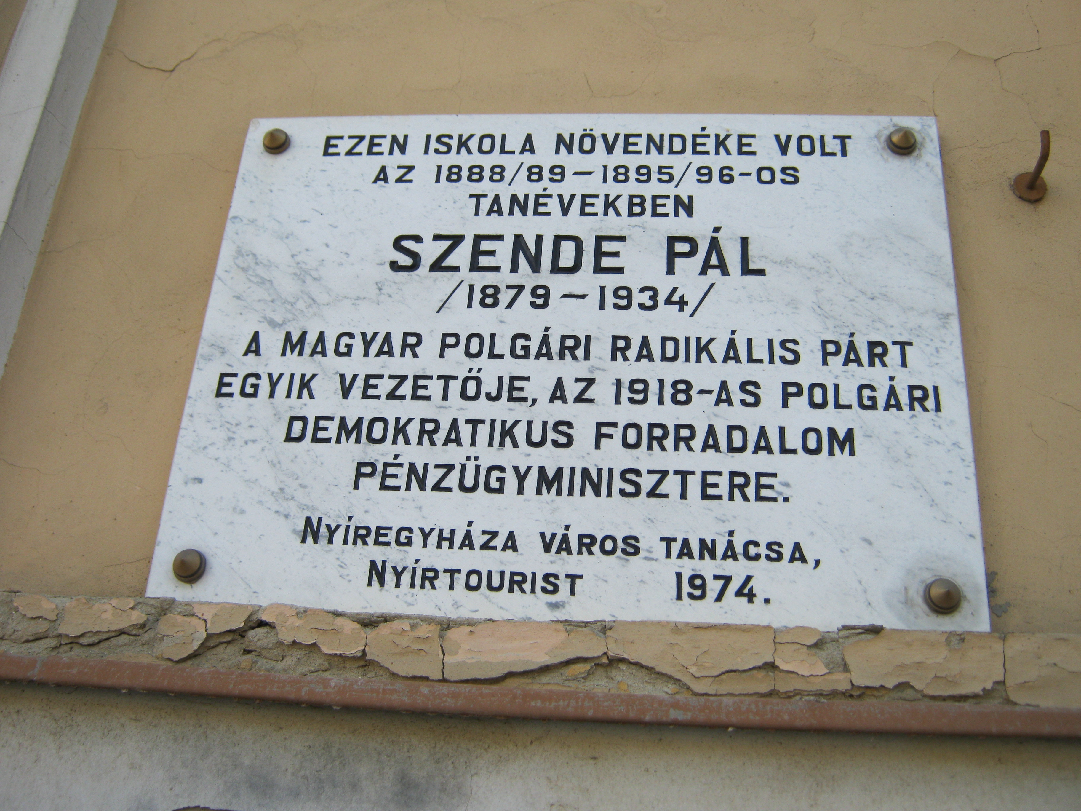 Nyilvános 1055 | 1377 | Nyíregyháza, Szent István utca 19. Evangélikus Kossuth Lajos Gimnázium | A megye legrégibb középiskolája. 1808-ban alapították mint evangélikus professzori iskolát (lásd: Nyíregyháza, Luther utca 5.). Nyolc osztályos gimnáziummá 1888-ra fejlesztették fel. Mai épületét ekkoriban, 1887-ben emelték Bobula János tervei szerint. Kossuth Lajos nevét 1921-ben vette fel. Az 1948-ban államosított iskolát 1992-ben kapta vissza az evangélikus egyház. Homlokzatán számos márványtábla emlékezik kiváló diákjaira, tanáraira. 1888/89 és 1895/6 között tanult itt Szende Pál, az 1918-as polgári demokratikus forradalom pénzügyminisztere. Felh. irod.: www.eklg.hu A fénykép 2010 augusztus elején készült |