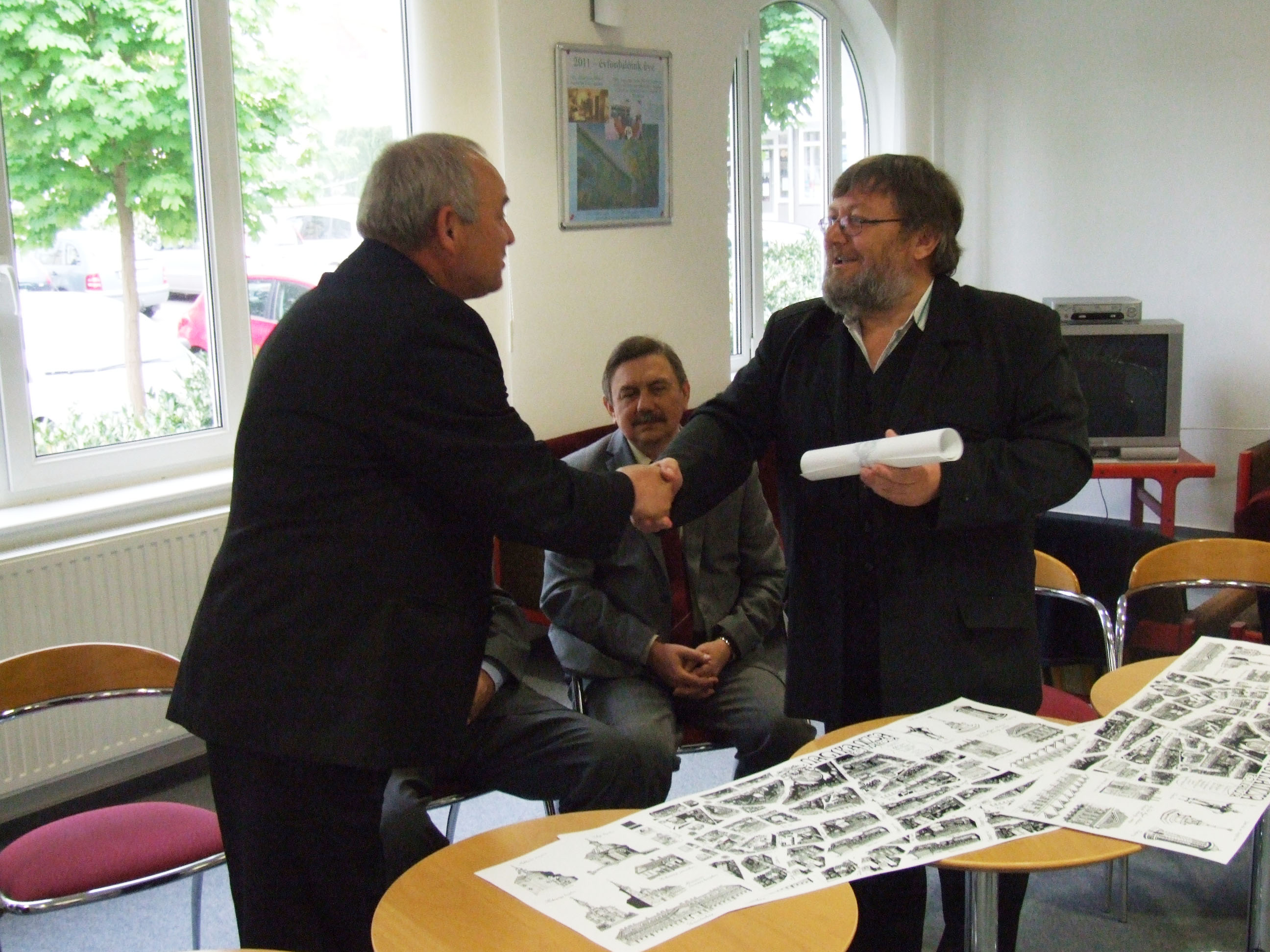 Nyilvános 1347 | 2611 | Nagykanizsa belvárosa – madártávlati kép | 2009 ősze óta folyt az munka, melynek eredményeként elkészült Nagykanizsa belvárosa madártávlati képe, Somogyi Győző alkotása. Bemutatására 2011. április 26-án, kedden 10,30-kor került sor a Halis István Városi Könyvtárban. Sokan támogatták a könyvtár és a Könyvtárpártoló Alapítvány törekvését – mondta el Czupi Gyula, a könyvtár igazgatója és az alapítvány képviselője. Az egész időszakban komoly segítséget jelentett a média képviselőinek támogatása, ezért az alkotást először az anyagi támogatóknak és a média képviselőinek mutatták be. A támogatók közül megjelent a Nagykanizsa Önkormányzatának képviseletében Dénes Sándor alpolgármester, a DKG-EAST képviseletében Szabó József, a nagykanizsai Városvédő Egyesület elnöke, Cserti Tibor, valamint a nagykanizsai Tourinform vezetője, Bali Vera. A magántámogatókat ezen a sajtótájékoztatón Tarnóczky Attila képviselte. A támogatók nem csak tanulmányozhatták az elkészült alkotást, hanem egy-egy példányt magukkal is vihettek ebből az alkalomból. Ugyancsak a kép egy-egy másolatával gazdagodva hagyták el a könyvtárat a média képviselői. A sajtótájékoztatón megjelenni nem tudó Kanizsa Plaza, a Sponzor Tours (Nagykanizsa), valamint a KKK Senior Kosárlabda Csapat később kapják meg a madártávlati képet, akárcsak azok, akik egyéni támogatásukkal segítették az alkotás létrejöttét. A könyvtár 60 éves születésnapjára készült művet nagyobb számban először a május 1-jei ünnepi program azon (300-nál több könyvet kölcsönző) meghívottjai kapják, akik emléklapot is vehetnek át ebből az alkalomból. Május 1-jétől a madártávlati kép meg is vásárolható a könyvtárban. Az érvényes könyvtári tagsággal rendelkezők kedvezményesen juthatnak hozzá. |