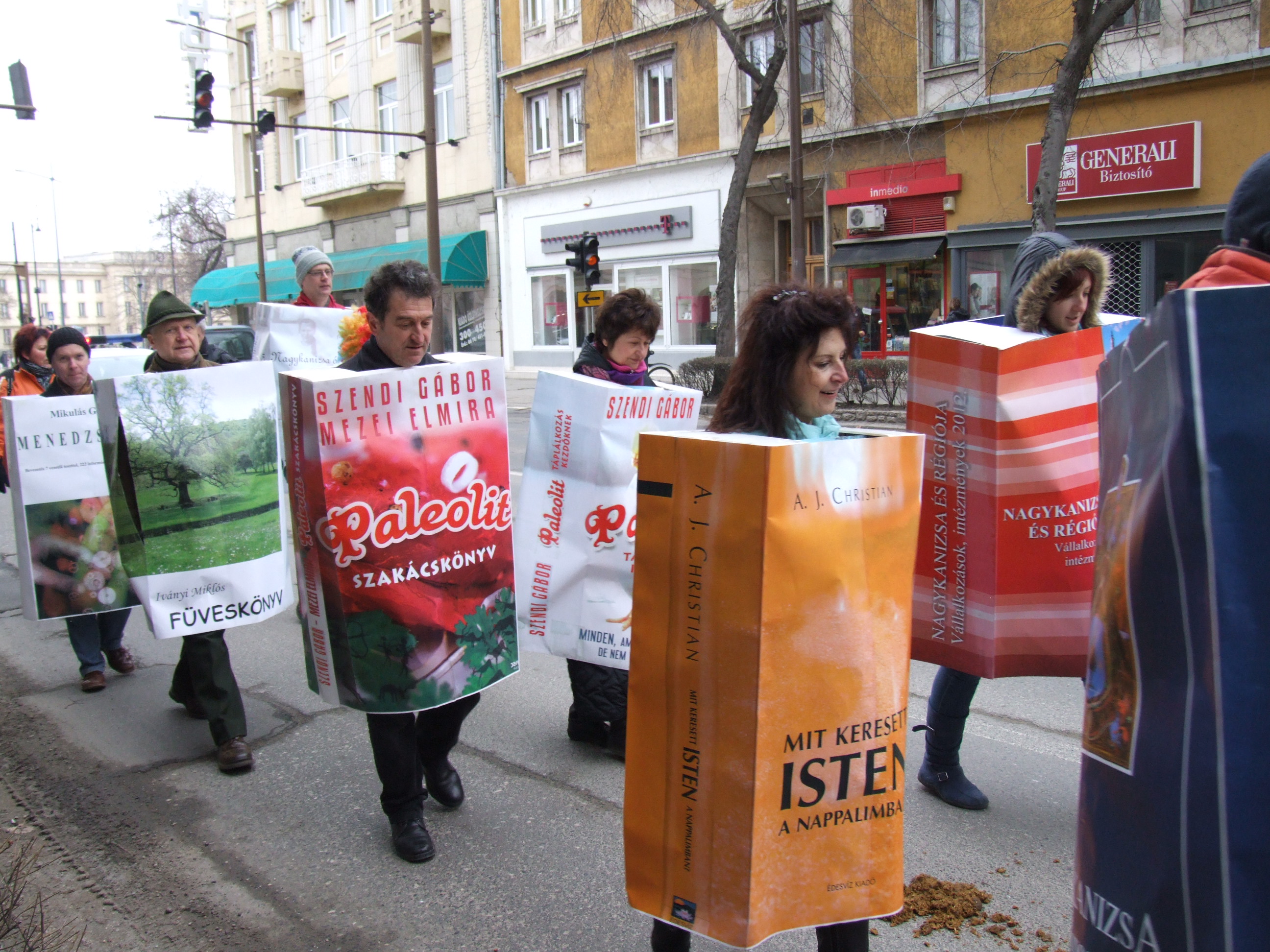 Nyilvános 1065 | 1409 | 2013. február 9. A farsangi fánkfesztiválra készülve felhívásban kértük olvasóinkat, hogy öltsék magukra kedves könyvüket. Egy „könyvespolcnyi” jelentkező vette magára kedves olvasmányát, az ő vonulásukról készültek ezek a képek. A környezetükben néhol láthatók a Nagykanizsai Gólyalábasok, akik szintén a könyvtárhoz kötődnek. A „felvonuló kötetek” a könyvtár épületében még megtekinthetők. | |