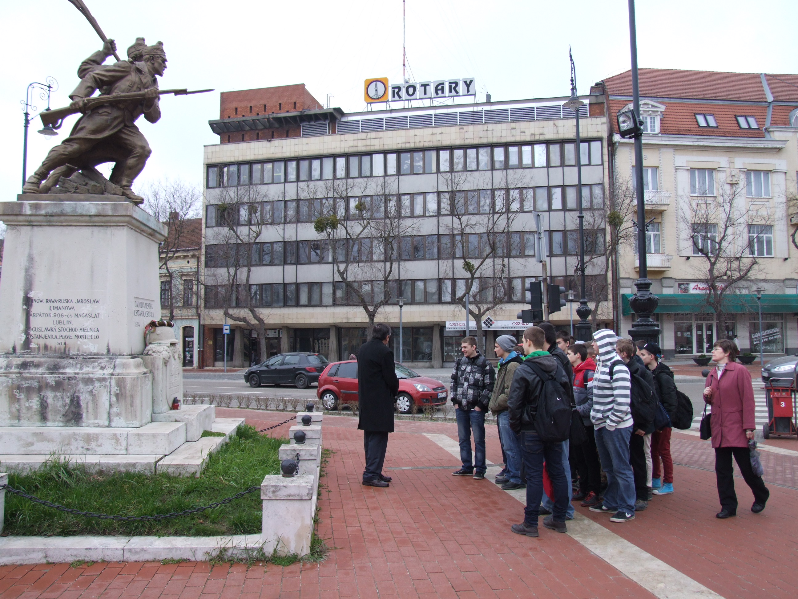 2014.03.03. Cserháti iskolások (9.d) a Harmincados háznál (Sóhivatal)