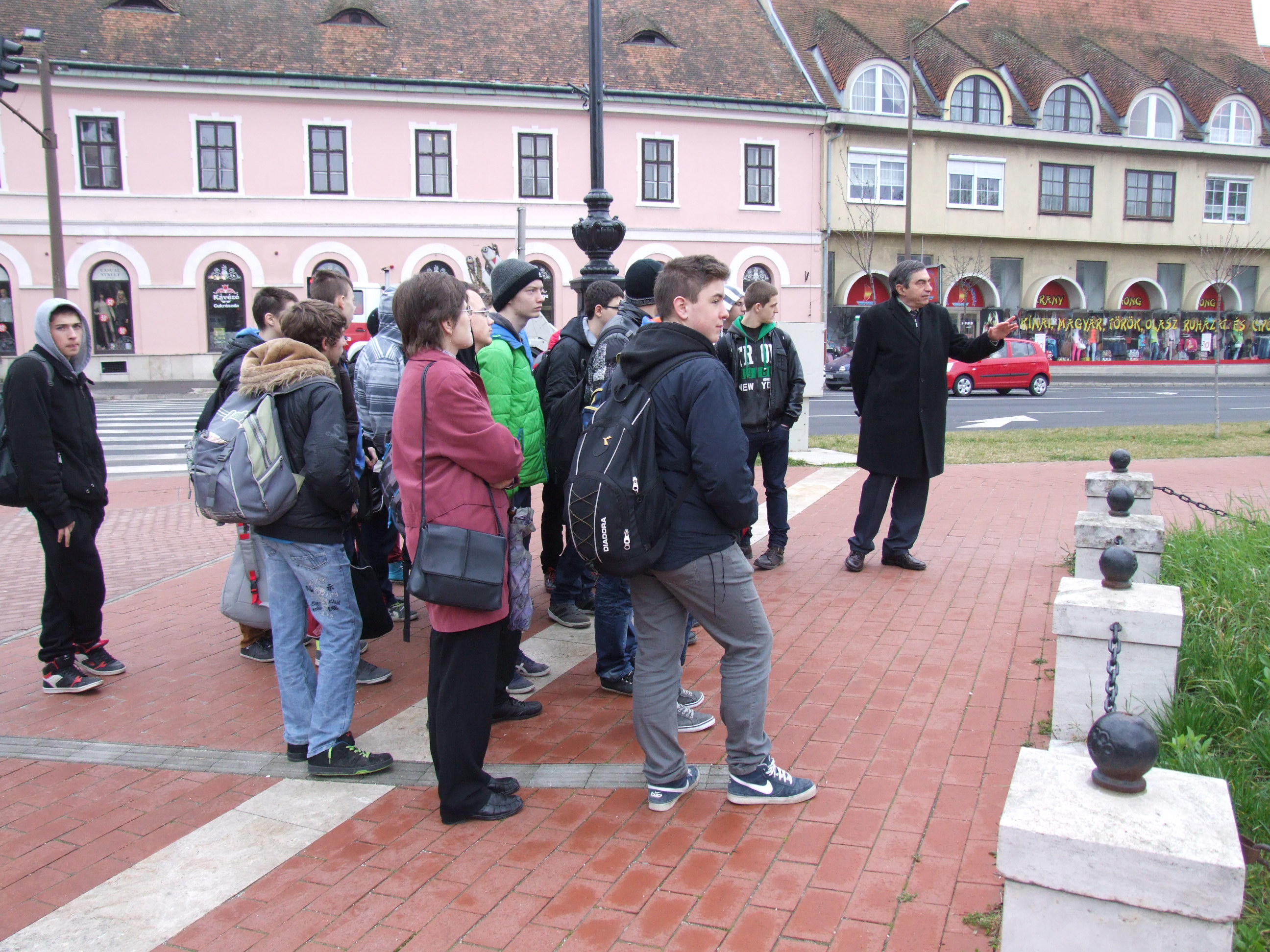 2014.03.03. Cserháti iskolások (9.d) a Harmincados háznál (Sóhivatal)