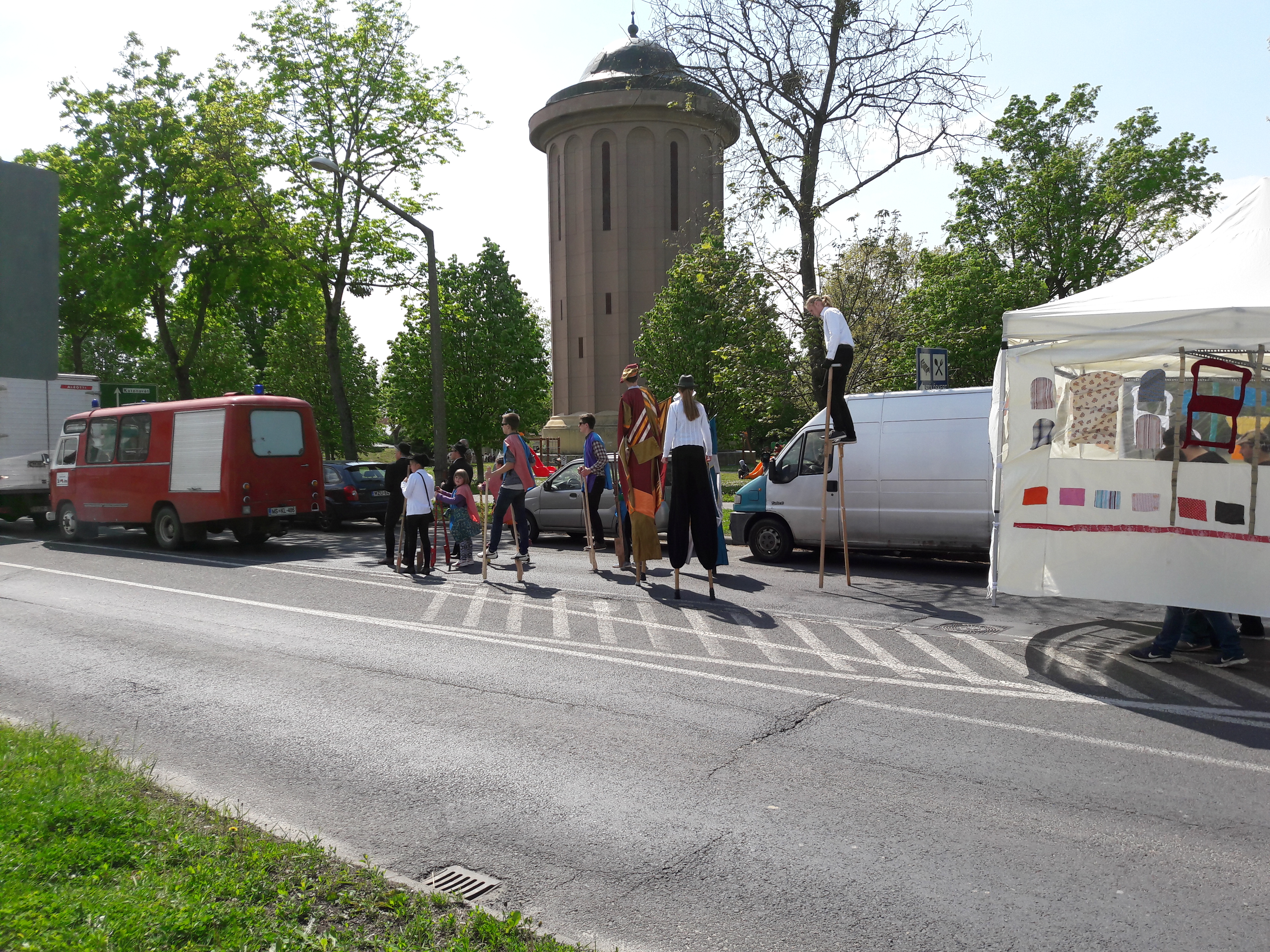 2017.04.30. Utca Tánc Fesztivál - Vonulás - Gólyalábasok, fekete kalapos táncosok, meridián tornások