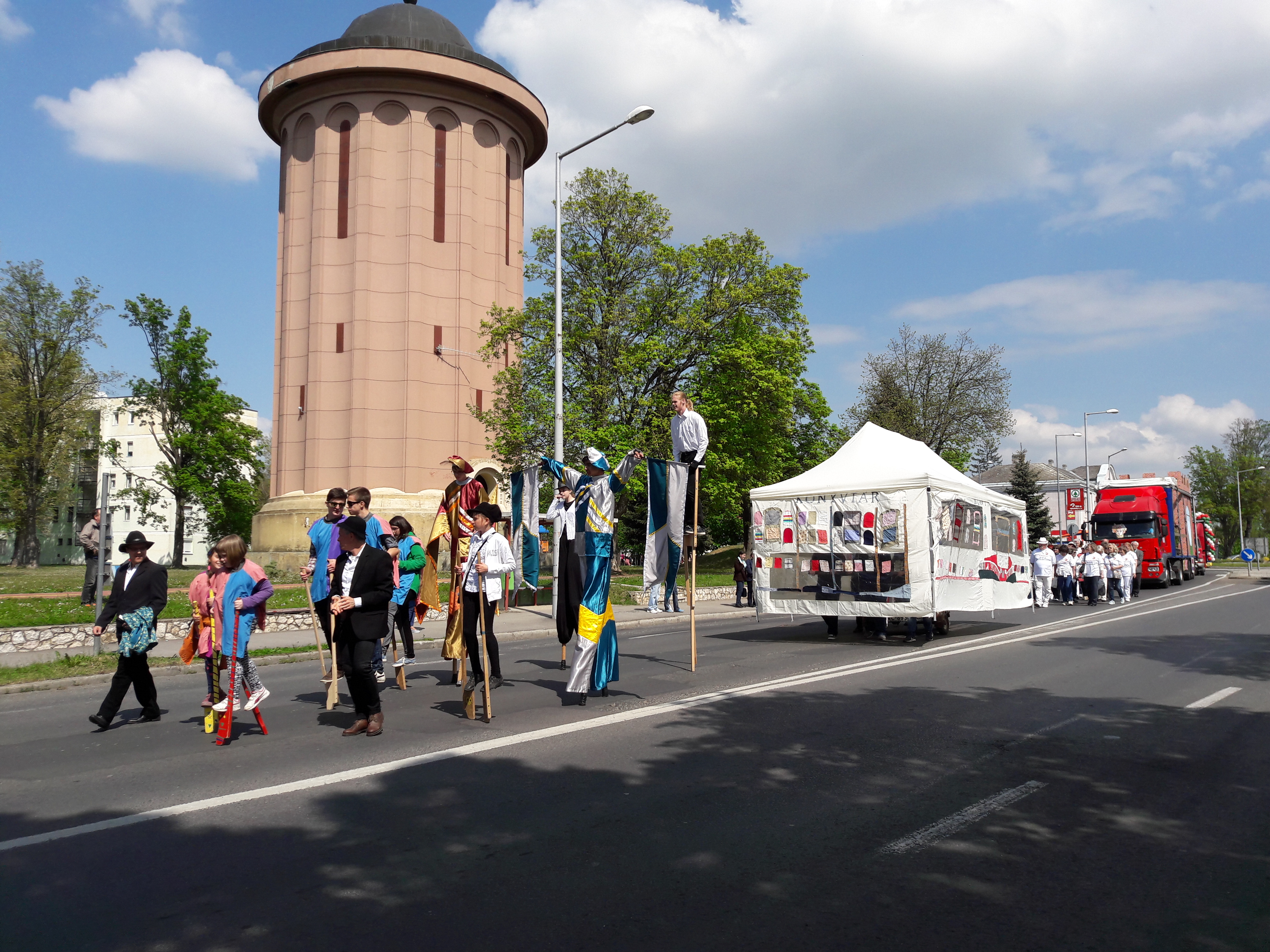 2017.04.30. Utca Tánc Fesztivál - Vonulás - Gólyalábasok, fekete kalapos táncosok, meridián tornások