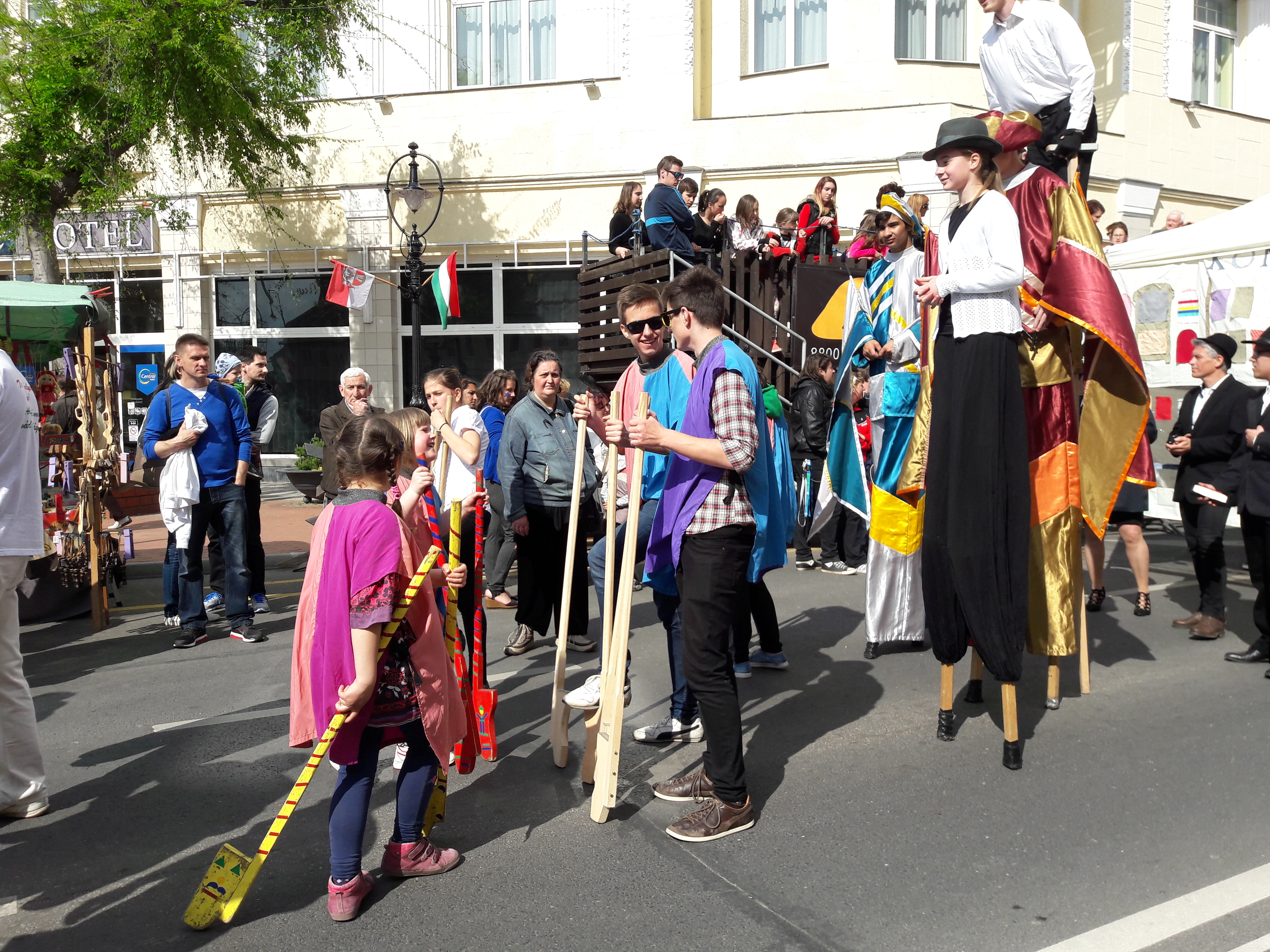 2017.04.30. Utca Tánc Fesztivál - Vonulás - Gólyalábasok, fekete kalapos táncosok, meridián tornások