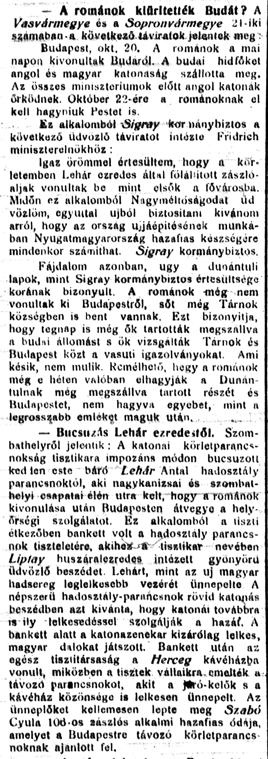 Lehár ezredes - Zala 1919
