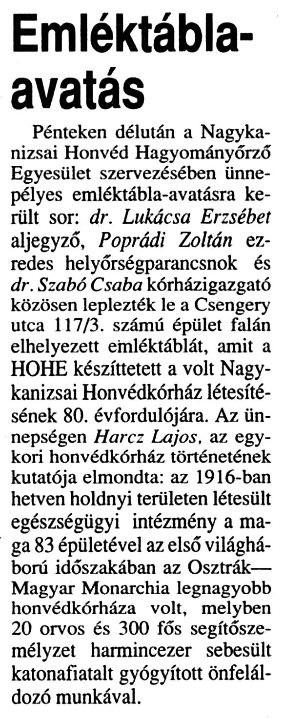Zalai Hírlap 1996. november 23. 24. oldal Emléktábla-ava ...