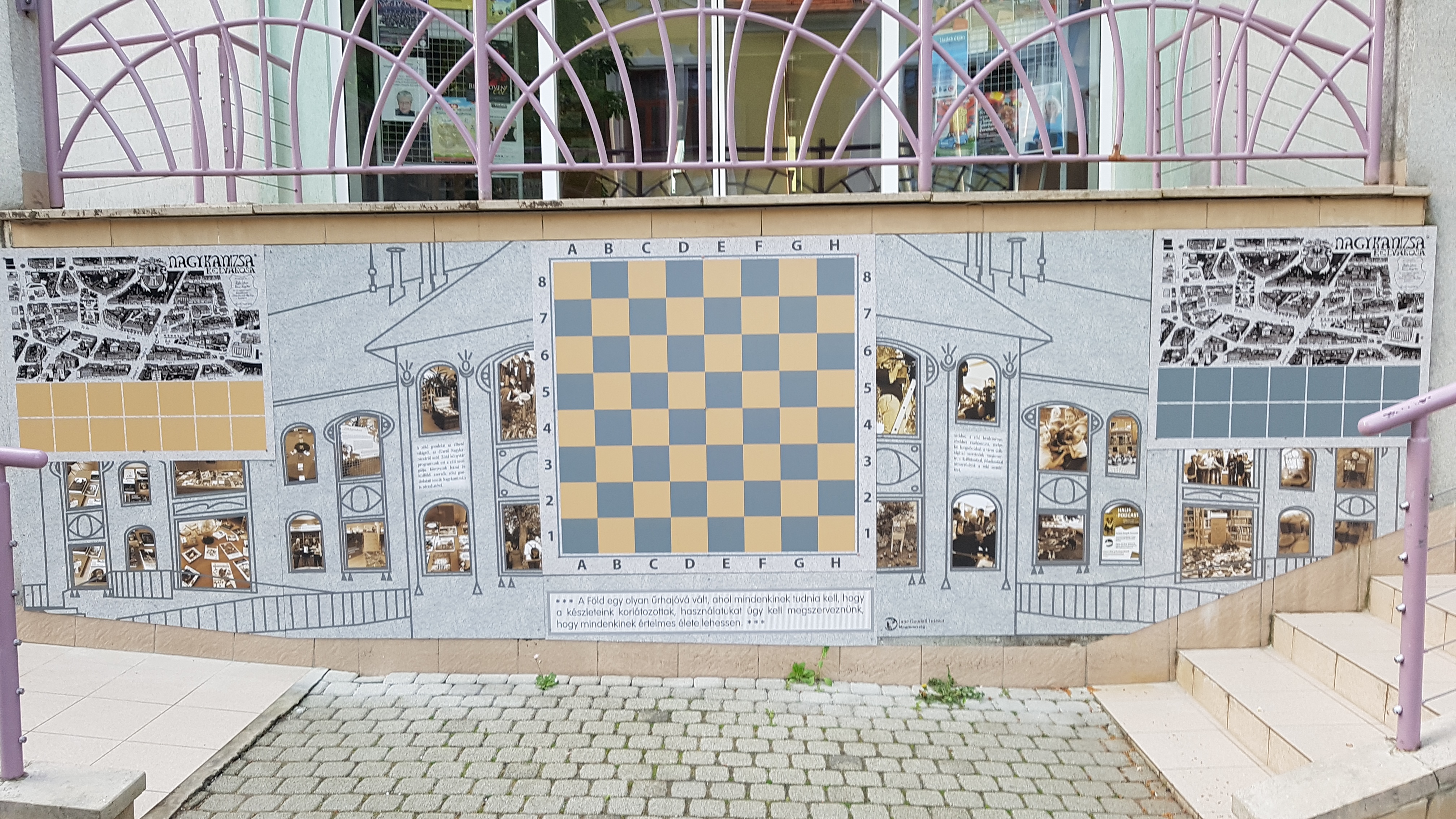 2024.04.04. Jane Goodall freskó felszerelése a könyvtár elejére