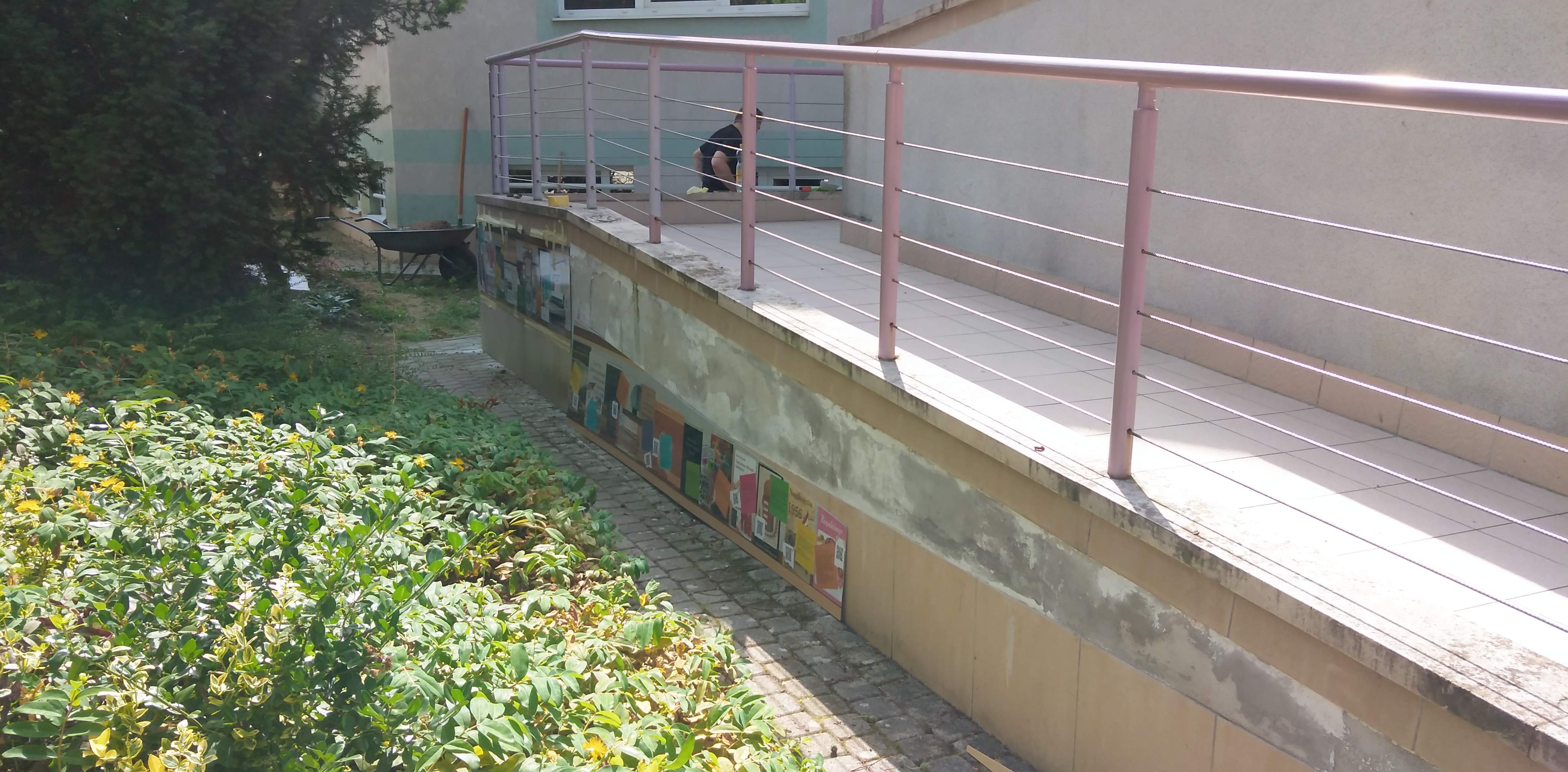 2023.06.26. Könyvtár rámpa freskó felszerelése, kavicsok meghozatala